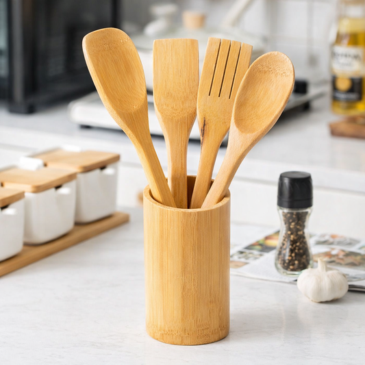 Kit 5 Utensílios de Madeira Bambu