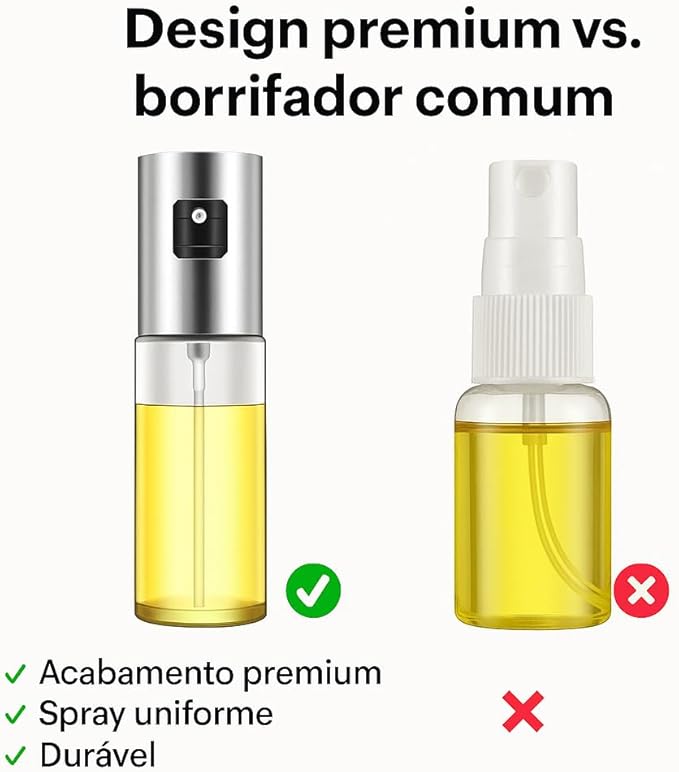 O Spray Pulverizador de Óleo, Azeite e Vinagre é um utensílio indispensável para quem busca praticidade, eficiência e controle no preparo e finalização de pratos. Com design moderno e funcional, ele é perfeito para aprimorar suas receitas e oferecer mais novidades na cozinha.