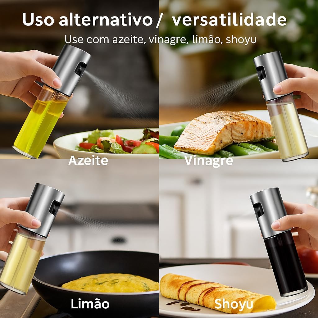 Uso Multifuncional Ideal para pulverizar diversos ingredientes líquidos, como óleo, azeite, vinagre, suco de limão, molho de soja, vinho, entre outros. Perfeito para temperar saladas, grelhar carnes, assar vegetais ou finalizar pratos com um toque profissional.